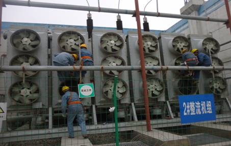 2015年度春檢工作的主要任務包括:對1-4#整流變機組72臺油冷卻風機檢修;對丁物ⅠⅡ回路全線巡查;對開關站瓷瓶防污閃清理等開展工作。