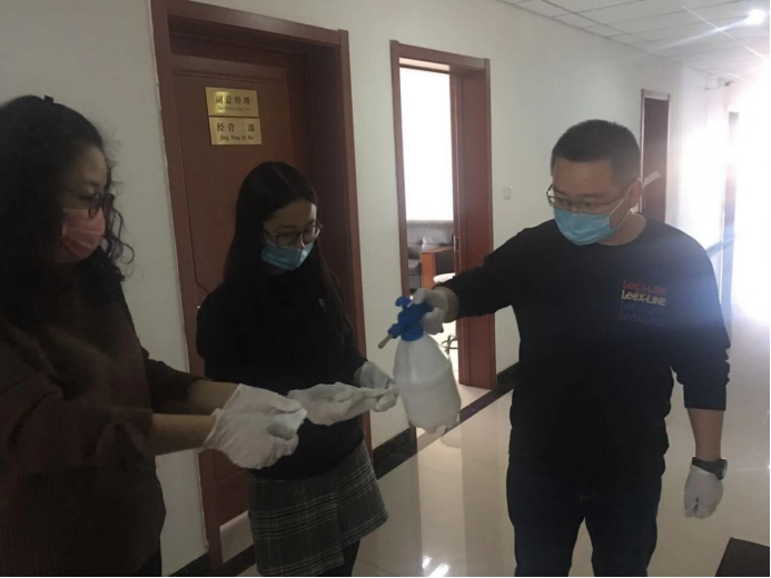 民爆公司黨支部黨員主動承擔起防控工作,在日常消毒,防控檢查,都能看到他們的身影。