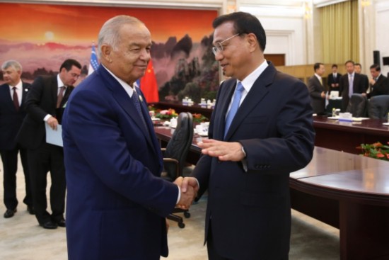 李克強總理會見烏茲別克斯坦總統卡里莫夫時說:"中烏可以在雙方感興趣的領域廣泛開展產能和裝備制造業合作。"